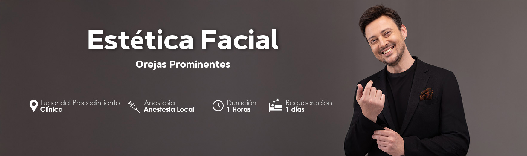 La cirugía de orejas prominentes (otoplastia) es un procedimiento cómodo que generalmente dura de 1 a 1.5 horas bajo anestesia local. Para los pacientes infantiles, se puede preferir la anestesia general.