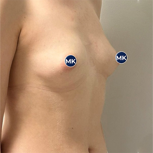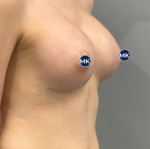 * In patients with slight sagging of the lower breast, but a normal nipple position: In this anatomical situation where the lower pole of the breast is long, under-the-muscle placement provides a more natural and balanced appearance.